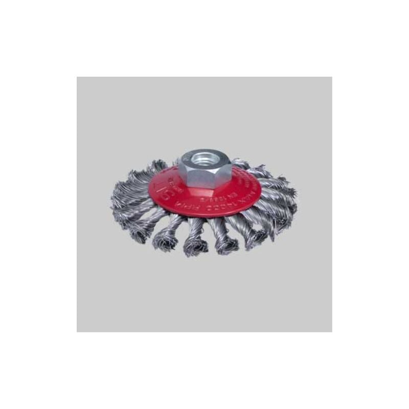 Filamenti in acciaio a mazzetti ritorti. Foro M14. Per utilizzo su smerigliatrici portatili, sia elettriche sia ad aria compressa, per lavori di rimozione scorie, ruggine e residui da superfici di ogni materiale e forma. Spazzola conica ritorta sit ø 95 mm SIT Spazzole acciaio sit
