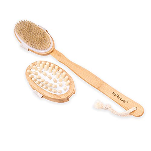 ✅【Pelle più sana e bella】Grazie all'uso regolare del set doccia HolBeauty migliora la tua pelle. Stimola la circolazione sanguigna, rafforza e rivitalizza la pelle, riducendo la cellulite e la pelle d'arancia. Il set è impermeabile e mantiene a lungo il suo aspetto naturale in legno. Con pratico cordino per appenderlo.