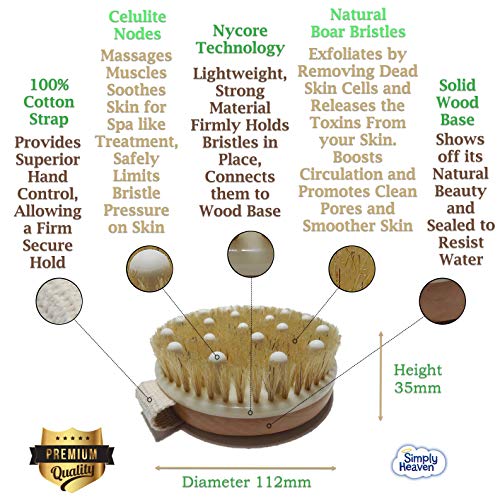 Spazzola per il corpo per la spazzolatura a secco o a umido, include uncino bonus, pelle secca secca esfoliante per un aspetto più morbido e levigato