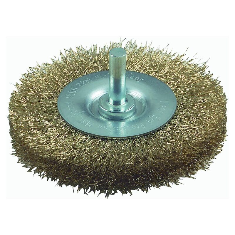 BOSCH - SPAZZOLA A DISCO FILO ONDULATO OTTONE 75MM Diametro mm: 75 Spessore del filo mm: 0.2 Numero di giri max., giri/min: 4500 Diametro codolo mm: 6 Larghezza spazzola mm: 8