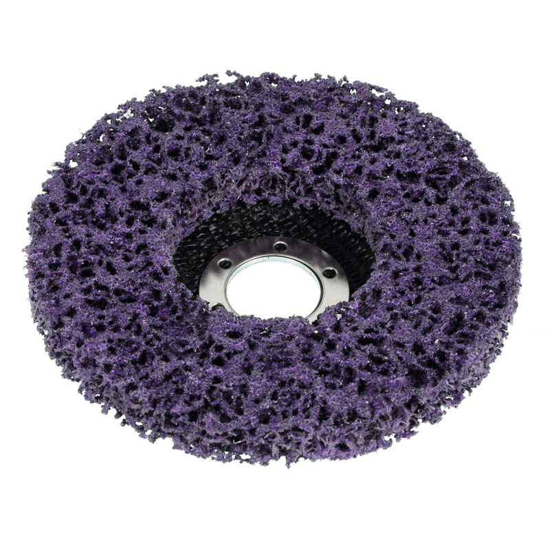Dischi abrasivi con tessuto in nylon abrasivo sintetico, uniforme con grana abrasiva. La struttura del tessuto molto grossa, non si intasa. L'esecuzione in tessuto estremamente dura e aggressiva produce una finitura più grossolana svolgendo al contempo una notevole azione pulente. Durata molto elevata, anche con impiego sui bordi. Uso: Per rimozione di ruggine, vernici e incrostazioni superficiali;