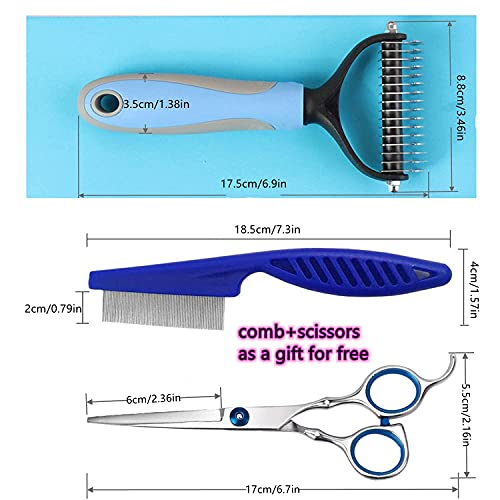Spazzola districante per cani a pelo lungo Set di toelettatura per cani e gatti per cani e gatti Riduce efficacemente la perdita di capelli Pettine districante + Pettine antipulci + Forbici (Blue)