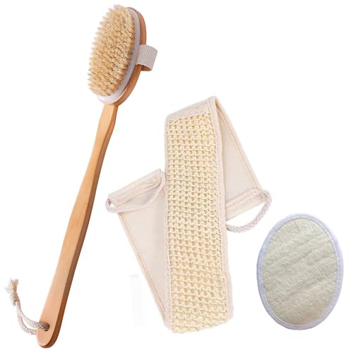 Spazzola da Doccia Manico Lungo,Scrubber per La Schiena in Sisal,Spugna di Luffa Pad,Spazzola Corpo Esfoliante,Spazzola Bagno Schiena,Migliora La Circolazione Del Sangue e Cellulite
