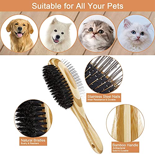 Spazzola doppia animali domestici Pettine cani da massaggio Spazzola per la cura della pelliccia Spazzola per capelli in bambù Spazzola con setole di cinghiale Spazzola ad ago Spazzola setole morbide