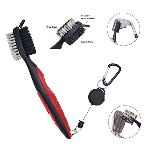 Spazzola e Groove Cleaner Golf - Spazzola doppio lato Nylon & Acciaio con picchetto per pulizia Club Face & Groove, con loop per appenderla, Borsa da golf, Red
