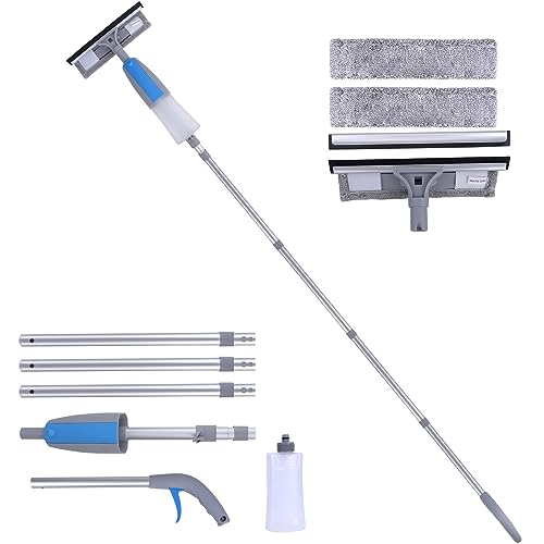 Detergente telescopico multiuso per finestre: questo palo multiuso estensibile per la pulizia delle finestre è ideale per pulire superfici in vetro esterne e interne, pulire efficacemente finestre alte, vetri doccia del bagno, finestrini auto, pannelli solari, porte, parabrezza e molto altro ancora.