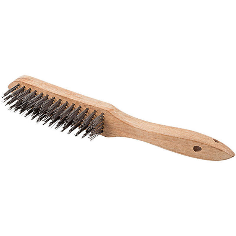 Spazzola metallica filo di acciaio fuso liscio temprato 0,35 mm dorso in legno forma curva lunghezza utile 145 mm lunghezza del fascio 25 mm Lunghezza totale 295 mm 4 file