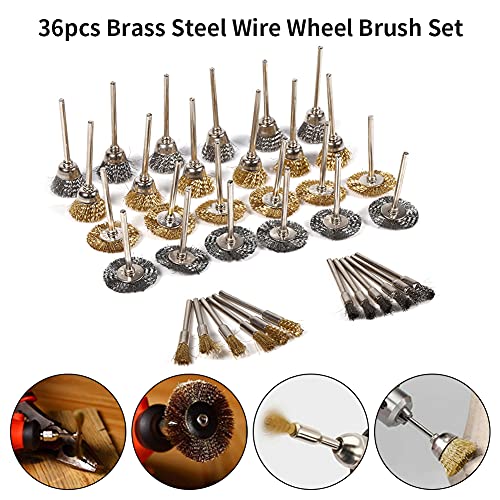 Kit Spazzola Metallica,36 Pezzi Mini Ottone Set di Spazzole in Filo di Acciaio Lucidatura Pulito Rotazione Strumento Accessori per Utensili Elettrici Usato per Smerigliatrici Angolari, Trapani, Attrez