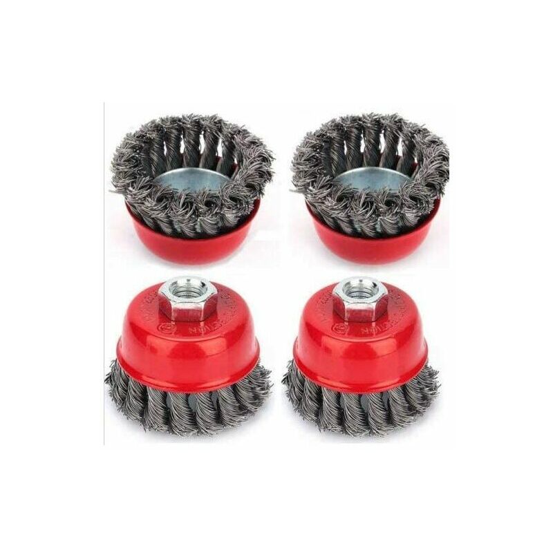 Descrizione: Diametro: Ø 75mm Filettatura di fissaggio - M14 Velocità massima - 12.500 / min < s> Calibro del filo - 0,5 mm La confezione include: 4 spazzole in filo d'acciaio intrecciato