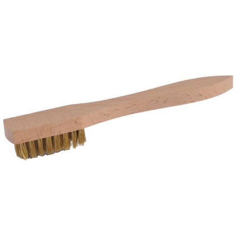 Spazzola specifica per la pulizia di elettrodi e contatti delle candele di accensione e di materiale scamosciato, ha base e manico in materiale plastico e setole in filo d'ottone della lunghezza di mm 0,20 a 5 capi. Marchio Excel