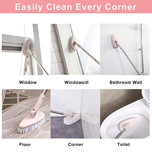 Spazzola per pavimenti con lunga handle-52.8, "Stiff setola pennello piastrelle e vasca scrubber regolabile con manico in acciaio INOX per pulizia bagno, parete e piattaforma