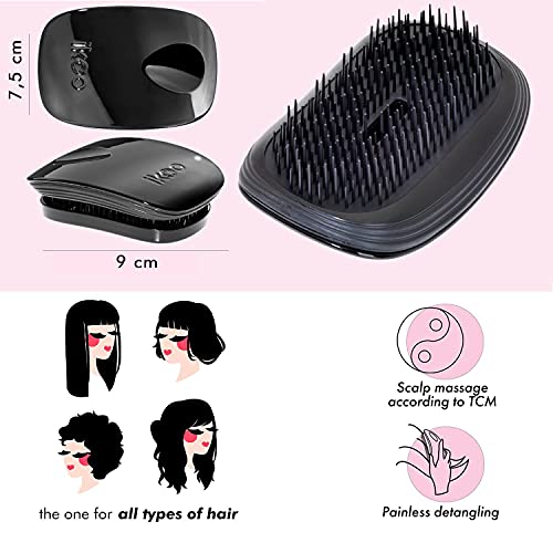 Spazzola ikoo pocket da viaggio ergonomica nel classico Nero con pannello nero e setole disposte in base ai principi della medicina tradizionale cinere per una quotidiana esperienza di wellness