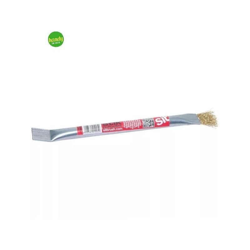 Spazzola e raschietto per strufe a pellet in acciaio ottonato. Filo ottonato diametro 0,3 mm Il pennello permette di rimuovere i residui, l'altra estremità raschia le incrostazioni. Spazzola sottoposta a test di collaudo a norma UNI EN1083-2