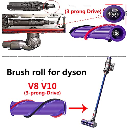 avviso: non tutti i V10 corrispondono, assicurati che la tua spazzola a rullo per V10 sia come nell'immagine,Compatibilità: Spazzola a rullo per Dyson V10 (3rebbi, diametro: 5cm). Numero della parte di ricambio: 969569-01.(Assicurati che la testa del motore del vuoto sia triangolare, la spazzola originale del rotolo è 3prong, il diametro è 5CM). No per Dyson V10 Absolute V8 Absolute V10 Animal V8 Animal