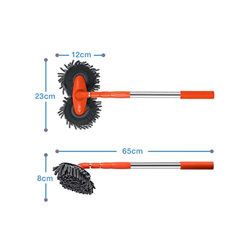 Spazzola retrattile a doppio strato: veloce e facile da usare e riporre. La spazzola per lavaggio auto è ideale per veicoli ricreativi, auto, SUV o camion. La scelta migliore per la pulizia di parabrezza dell'auto, pneumatici e vernice, nonché per la pulizia della casa. Testa di mocio staccabile, design elastico, attacco a presa per una facile rimozione e pulizia. Economico, facile da pulire e sostituire la spazzola per autolavaggio. Manico in schiuma antiscivolo, facile da impugnare.
