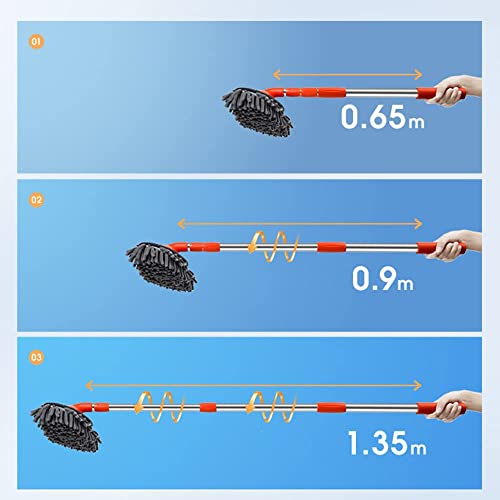 Mop per autolavaggio con manico lungo: l'asta in lega di alluminio è dura, stabile, leggera e non arrugginisce facilmente. Lo strumento di lavaggio dell'auto è uno strumento multiuso per la pulizia retrattile, questo mocio leggero può essere ritratto. Design a doppia testa, autolavaggio rotante a 360 gradi senza vicoli ciechi, la lunghezza della barra di scopa regolabile aiuta a pulire luoghi di diverse altezze e gradi, risparmiando tempo e fatica, pulizia versatile e multifunzionale, pulizia è più pulita.