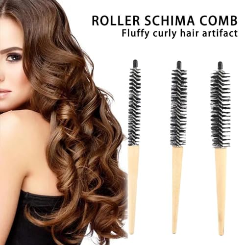 Spazzola rotonda per capelli in legno, pettine a rullo piccolo da parrucchiere, spazzola rotonda per capelli per uomini e donne, piccola spazzola rotonda per acconciare e aggiungere volume a qualsiasi