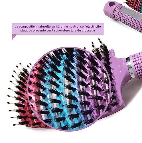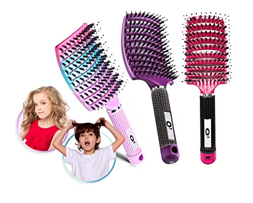 Spazzola Setole Cinghiale [ 3 Spazzole ] La Spazzola Magica che Districa senza Dolore! Capelli Sani e Scintillanti - Adulti e Bambini ((Rosa arcobaleno, viola, rosa brillante)