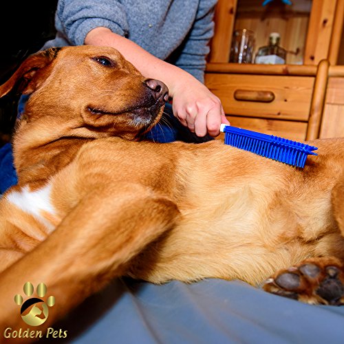 Spazzola speciale Golden Pets per rimuovere peli di animali domestici, spazzola per cani e gatti per tappezzeria e superfici tessili, effetto massaggio delicato per cani e gatti + di e-book gratuito