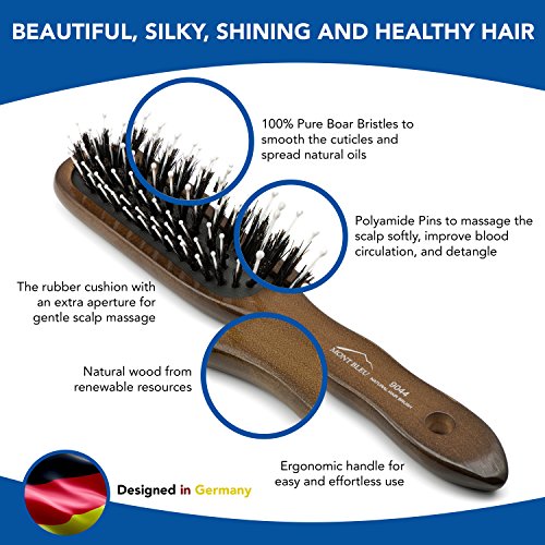 Spazzola per capelli di lusso, in setole di cinghiale pure per capelli sani e brillanti dal primo utilizzo