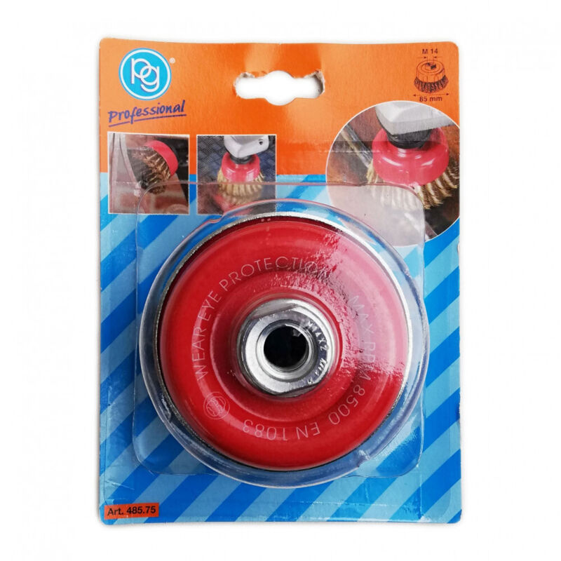 Spazzola a tazza fili acciaio ritorti per smerigliatrice - ? mm.85 foro filettato 14 ma pg 485.75
