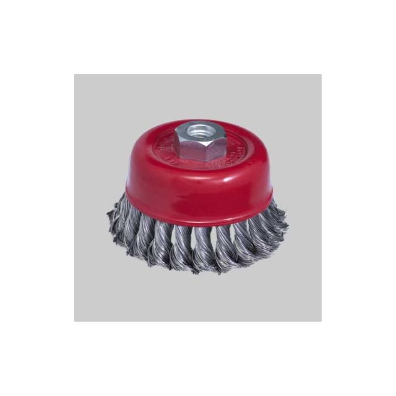 Filamenti in acciaio a mazzetti ritorti. Foro M14. Per utilizzo su smerigliatrici portatili, sia elettriche sia ad aria compressa, per lavori pesanti di sgrossatura, e finitura di saldature e sbavature. Spazzola a tazza ritorta sit ø 100 mm SIT Spazzole acciaio sit