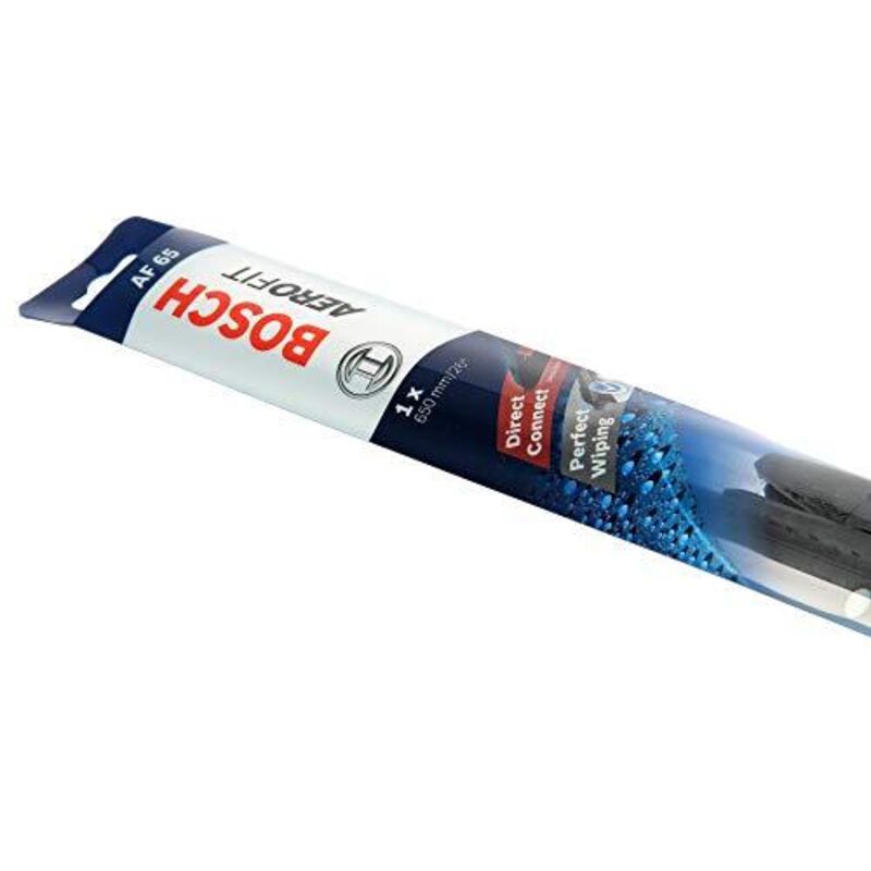 Spazzola tergicristallo BOSCH modello Aerofit AFP65, lunghezza 650 mm, colore nero. Il design aerodinamico, l'esclusivo rivestimento della gomma tergente e le guide elastiche realizzate su misura in funzione della curvatura del parabrezza dei tergicristalli Bosch Aerofit, assicurano un'ottima tergitura, senza saltellamenti o rumori, anche ad elevate velocità e con qualsiasi condizione atmosferica. Inoltre i tergicristalli Bosch offrono una lunga durata grazie al materiale estremamente robusto e resistente, difficilmente deformabile anche in presenza di calore estremo o gelo. Adatta ad ogni tipo di braccio, facile da installare, con doppio meccanismo di bloccaggio sicurezza. Tipologia: Tergicristalli