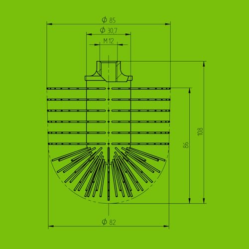 WC spazzola testa bianco, Ø 85 mm, M12 filettatura interna, Set da pezzi