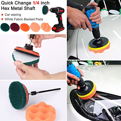 25 in 1 Set di spazzole per trapano: 5PCS Drill Brush (2" / 3.5" / 4" / 5" / 5.9"), 3.5" Ball Brush (lungo), 15CM Extension Rod, 12PCS Cleaning cloth (4 red + 4 orange + 4 green), 4PCS Sponge (4inch), 4 inch adhesive plate, drawstring storage bag. (Punta di trapano non inclusa). Si può scegliere la giusta spazzola per trapano per pulire ed eliminare macchie, ruggine, muschio, ecc.