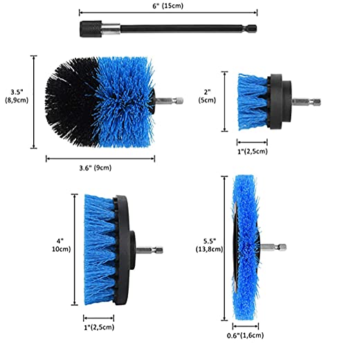 Kit di spazzole per trapano per tutti gli usi: 4 spazzole + 1 asta di prolunga, che può pulire la vasca da bagno, malta, tappezzeria, superficie del bagno, pavimento, piastrelle, doccia, WC e moquette, ecc. L'asta di prolunga aiuta la spazzola per la pulizia a pulire facilmente gli spazi vuoti e angoli.