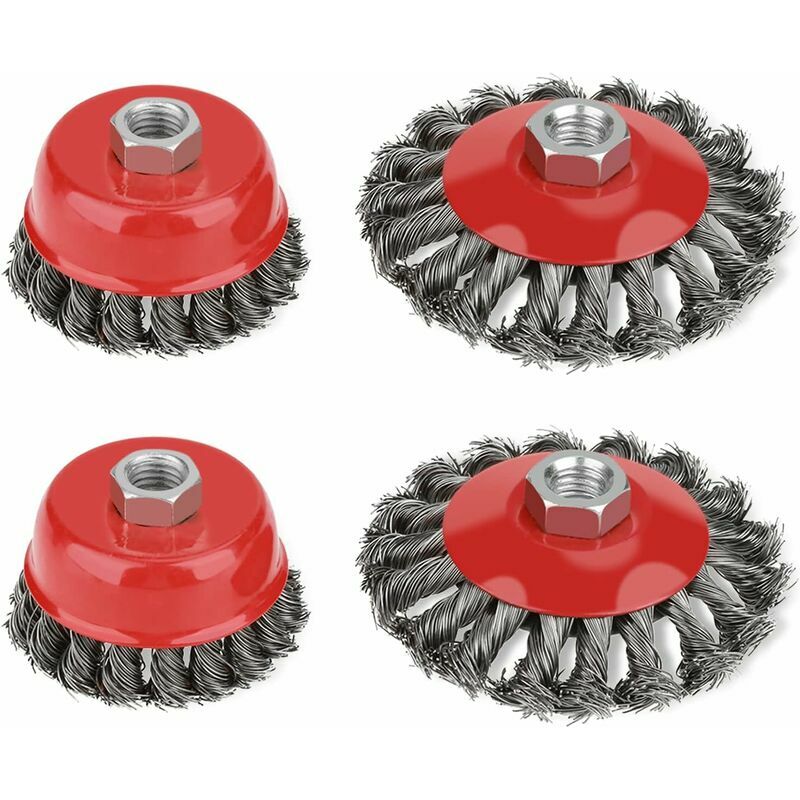Set di 4 spazzole per ruote in acciaio a tazza piatta con nodo rotante per rimuovere ruggine e vernice dalle smerigliatrici angolari < br/> Caratteristiche: 1. 4 spazzole rotonde in filo di acciaio di alta qualità. 2. Spazzole tonde in filo di acciaio con due tipi di forme per soddisfare esigenze diverse. 3. Ottima scelta per rimuovere vernice e ruggine, pulire le saldature, sfumare i bordi e trattare le superfici ruvide. 4. Abbina la smerigliatrice angolare da utilizzare. 5. Dotate di fili in acciaio, le spazzole diventano forti ed efficienti. Specifiche: Materiale: filo di acciaio e metallo legato Utilizzabile smerigliatrice angolare: filettatura M14 Il colore rosso Diametro: 75 mm / 2,95 pollici, 105 mm / 4,13 pollici < p>Peso: circa 844 g La confezione include: < ;