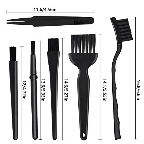 6 in 1 Set di Spazzole Antistatiche, 5 x Multi-Sized Spazzola in Plastica con 1x Paio di Pinzette Antistatiche, Nero Piccolo Set di Pennelli, Spazzola per Pulizia Tastiera PC