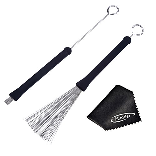 Spazzole per Batteria, Cavo Retrattile Ciclo Termina Tamburo Spazzole per Bastone di Jazz Tamburo Batteria, 2 Pezzi