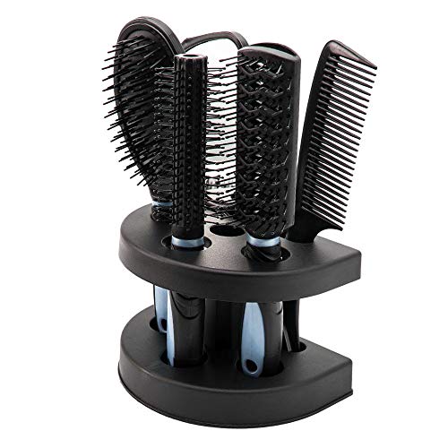 Set di 5 spazzole per capelli da donna con spazzola per capelli, pettine, specchio, spazzola per massaggi e supporto per adulti e bambini (blu)