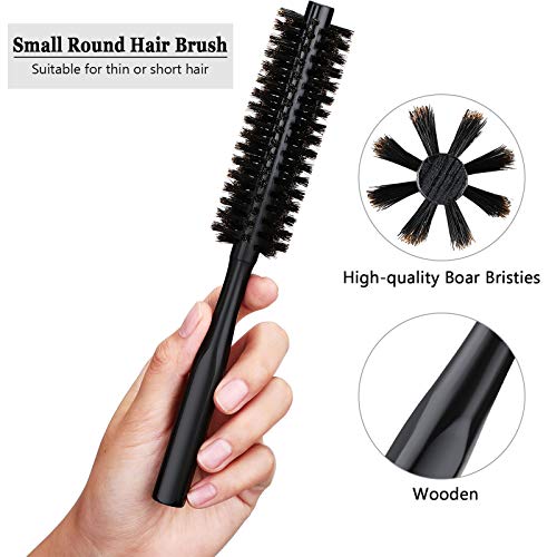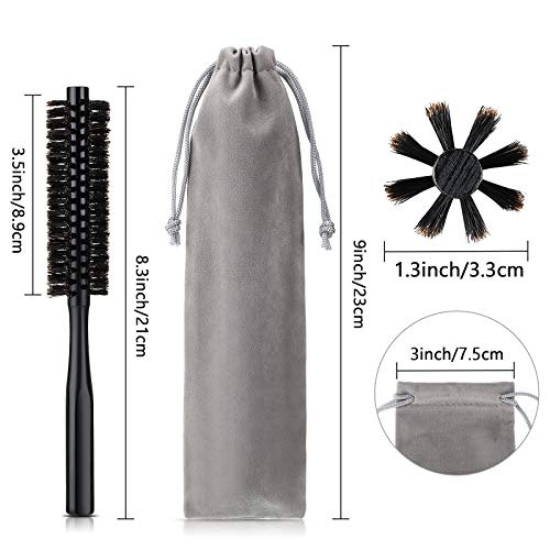 2 Spazzole per Capelli Rotonda Piccola per Pixie, Capelli Sottili o Corti, Mini Quiff Rullo Spazzola Tonda in Setola per Barba con 2 Borse con Coulisse per Frangia, Barba, Styling, Manico in Legno