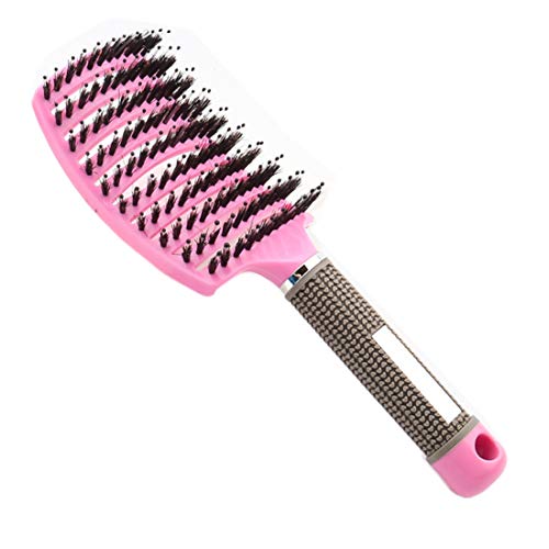 Set di spazzole per capelli con setole di cinghiale - JT JUSTIME curvo e ventilato spazzola per capelli districante (rosa)