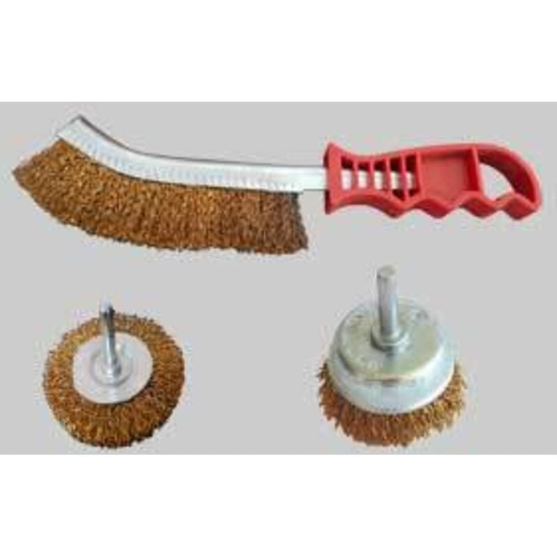 Composto da: spazzola a mano, spazzola circolare con gambo mm.75 e spazzola a tazza con gambo mm.50. Kit 3 spazzole ideal star 3 pezzi (2 spazzole a gambo + 1 spazzola a mano) IDEAL STAR Spazzole acciaio ideal star