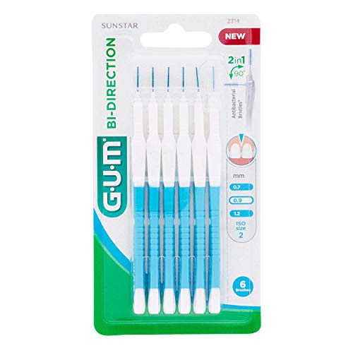 Gum - Spazzole interdentali bi direzionali, confezione da 6 pezzi, 0,9 mm, colore: blu, confezione risparmio da 3 x 6 pezzi