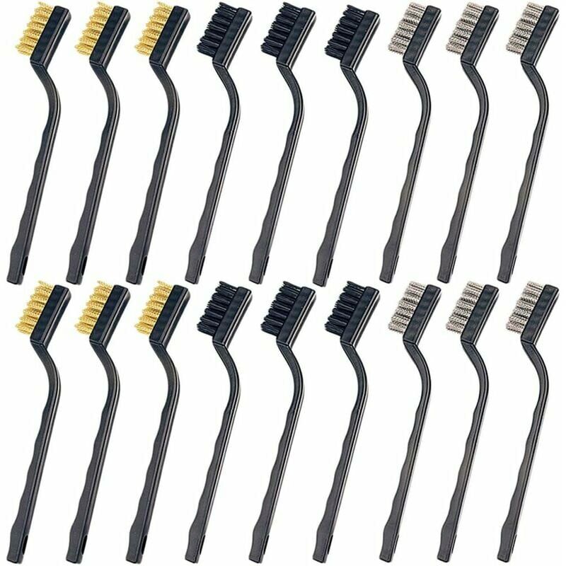 Caratteristica: I manici comodi, resistenti e antiscivolo sono facili da impugnare e controllare. Facile da pulire piccoli punti e spazi ristretti. Le setole in ottone puliscono le parti metalliche grezze senza danneggiare le superfici o i dettagli fini. Le nostre spazzole metalliche in acciaio inossidabile, ottone e nylon possono essere utilizzate con superfici metalliche, superfici in legno e superfici in marmo per rimuovere corrosione, ruggine e vernice. Queste spazzole possono essere utilizzate in luoghi stretti e difficili da raggiungere. Ideale per la pulizia di utensili, lime, piccole parti del motore e tubi di rame. Spazzola in acciaio inossidabile: Colore: argento Materiale: acciaio inossidabile Lunghezza del manico della spazzola: 13 cm/5,1 pollici Lunghezza della testina della spazzola: 4 cm / 1,6 pollici Larghezza testina: 1 cm / 0,4 pollici Spazzola metallica in ottone: Colore: oro Materiale: ottone Lunghezza manico pennello: 13 cm / 5,1 pollici Lunghezza testina: 4 cm