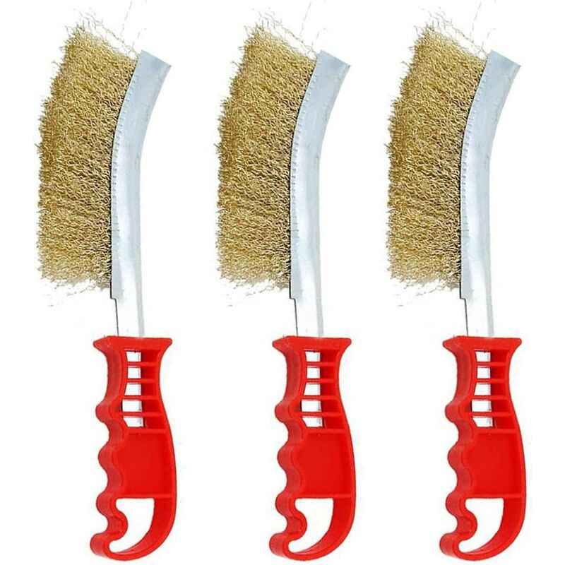 Materiale durevole - : i set di spazzole metalliche sono realizzati in acciaio inossidabile, ottone e nylon, resistenti e durevoli, possono rimuovere completamente ruggine e dettagli, aumentando la durata per prolungarne la durata. 【Design】: il manico della spazzola adotta un design curvo, che si adatta al movimento di presa del palmo umano e rende le persone più comode e naturali durante l'utilizzo. Il design del foro per appendere ti consente di appendere la spazzola in altri luoghi dopo l'uso, risparmiando spazio ed è facile da trasportare. 【Flessibilità】: comode maniglie per spazzole metalliche manuali per lavorare diversi materiali e app. Manici comodi e resistenti, facili da impugnare e utilizzare. 【Ampia gamma di usi】: queste spazzole non solo possono pulire parti in acciaio, macchinari, parti metalliche non finite, macchie di vernice, corrosione speciale senza danneggiare la superficie o le caratteristiche fini, ma possono anche essere applicate per pulire porte, finestre