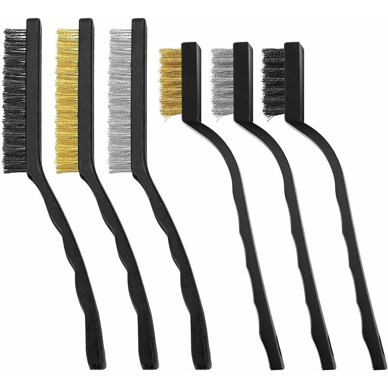Materiale eccezionale: questa spazzola metallica è realizzata in plastica di alta qualità, ottone e acciaio inossidabile. La spazzola in acciaio ha una resistenza alla corrosione, che garantisce la massima durata nel tempo. Questa spazzola in ottone può resistere alla prova del tempo, è robusta e durevole per un uso a lungo termine. Manico ergonomico: questo set di spazzole metalliche in acciaio inossidabile è dotato di un manico ergonomico, che ha un bordo spesso e liscio senza sbavature e non sarà affilato per tagliarti le mani, afferralo comodamente. Design della spazzola leggermente ricurvo per una facile pulizia di vernice e ruggine dal metallo. Ampie applicazioni: la nostra spazzola metallica per trapano può essere utilizzata su vernici antiruggine e anticorrosione su metallo. spazzola per smerigliatrice metallica per l'uso su candele di motori in metallo leggero e pulizia della batteria. La spazzola in nylon è destinata alla pulizia di tosaerba e tende verticali in plastica e