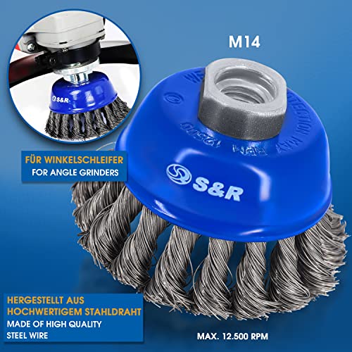 S&R Spazzole Metalliche per Smerigliatrice e Manuale.Spazzola a tazza 75mm, Spazzola Circolare 100 mm, Spazzola Manuale in acciaio