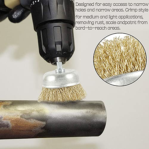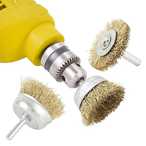 13 spazzole metalliche per trapano, spazzola in ottone, codolo rotondo da 6 mm per avvitatore a batteria, spazzole in filo rivestito in ottone, spazzola in ottone per rimuovere ruggine