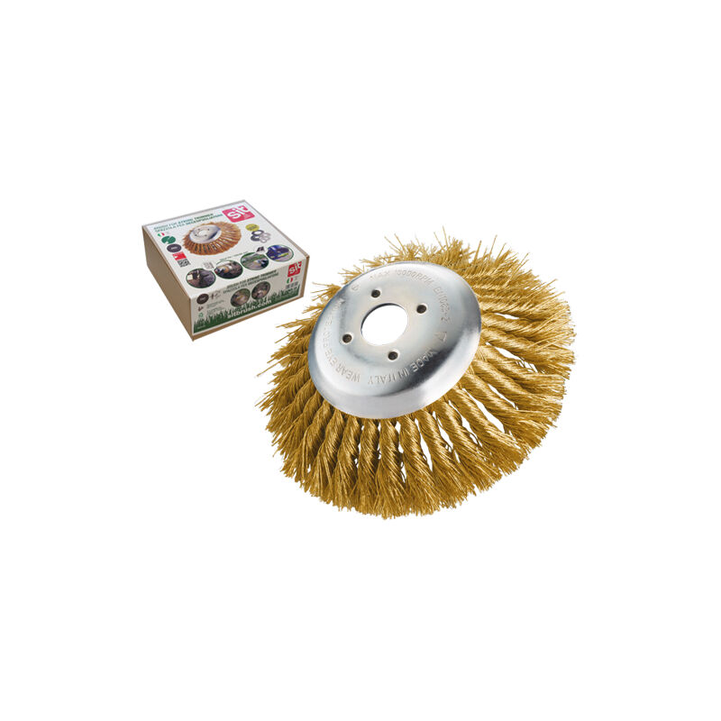 Spazzola conica Ø20 cm. a mazzetti ritorti costituiti con trefoli cm. 5xØ0,25 mm. in acciaio ottonato ad alto tenore di carbonio.