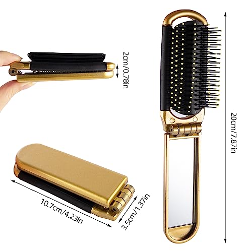2 spazzole pieghevoli per capelli con specchio, spazzola per capelli da viaggio, borsa pieghevole, spazzola per capelli tascabile, da viaggio, pieghevole, per donne e ragazze (oro e argento)