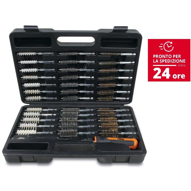 Kit spazzole per la pulizia della sede degli iniettori - Beta 960PI/K36 Il kit include: • 12 spazzole in nylon da 8 a 19 mm (intervallo 1 mm) • 12 spazzole in acciaio da 8 a 19 mm (intervallo 1 mm) • 12 spazzole in ottone da 8 a 19 mm (intervallo 1 mm) • 1 giravite portainserti con attacco rapido e fondo calamitato • 1 prolunga con attacco rapido e fondo calamitato Dim.: 350x255x74 mm Peso: 1253 g Cod. Art. L mm 009600218 960PI/K36 100 DIN 3126 E6,3