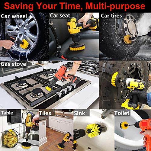 3 spazzole medie per trapano Stiffness, realizzate in polipropilene ultra stente di alta qualità, ogni spazzola è abbastanza rigida. Adatto per la pulizia dei cerchioni dell'auto, per eliminare i lavori di pulizia più duri e più velocemente e senza graffiare la vernice o la R. Ideale anche per bagni, docce, vasche da bagno, WC, piastrelle, fughe, pavimenti, tappeti, cucina, lavandini, angoli, griglia e tappezzeria auto, ecc. Un set soddisfa tutte le vostre esigenze di pulizia