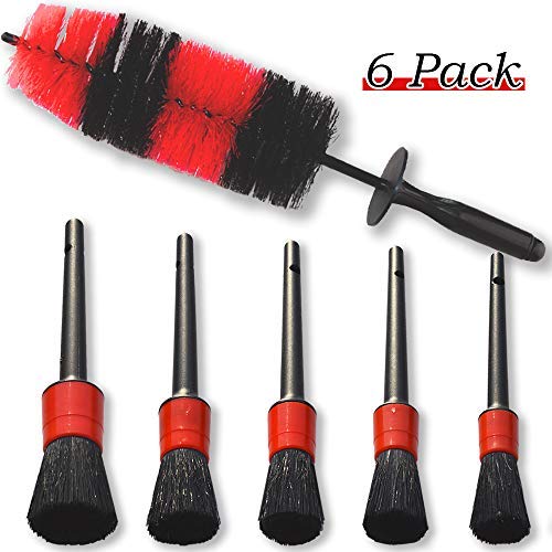Confezione da 6: una spazzola per auto con setole semi-morbide e resistenti agli agenti chimici di grandi dimensioni, con setole naturali di cinghiale.