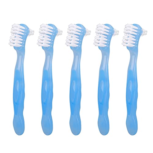 Set di Spazzole per Rimozione Protesi da 5 Pezzi, Set di Spazzole per Protesi da Viaggio Professionale Spazzola per Rimozione di Denti Falsi a Doppia Faccia Portatile per la Cura della Protesi(Blu)