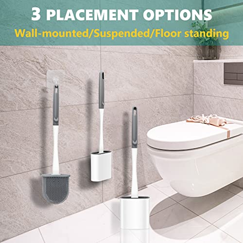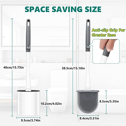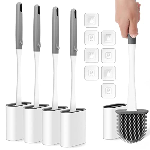 Set di 4 spazzole per WC in silicone con supporto, scopino per WC profondo con manico lungo antiscivolo e setole morbide e base antigoccia